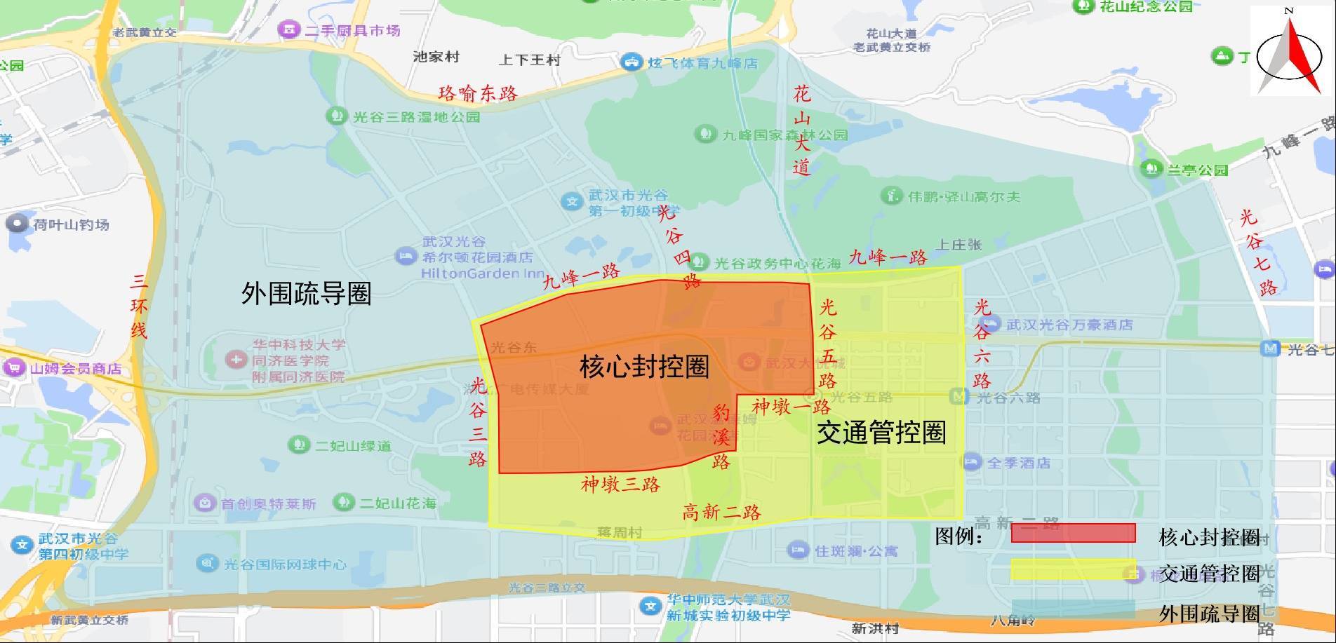 四、需通行上述路段的机动车,出城方向可经三环线、森林大道、花山大道或光谷三路、高新二路、光谷六路、光谷七路等相关道路绕行,进城方向可经光谷六路、光谷七路、九峰一路、光谷三路、森林大道等相关道路绕行。